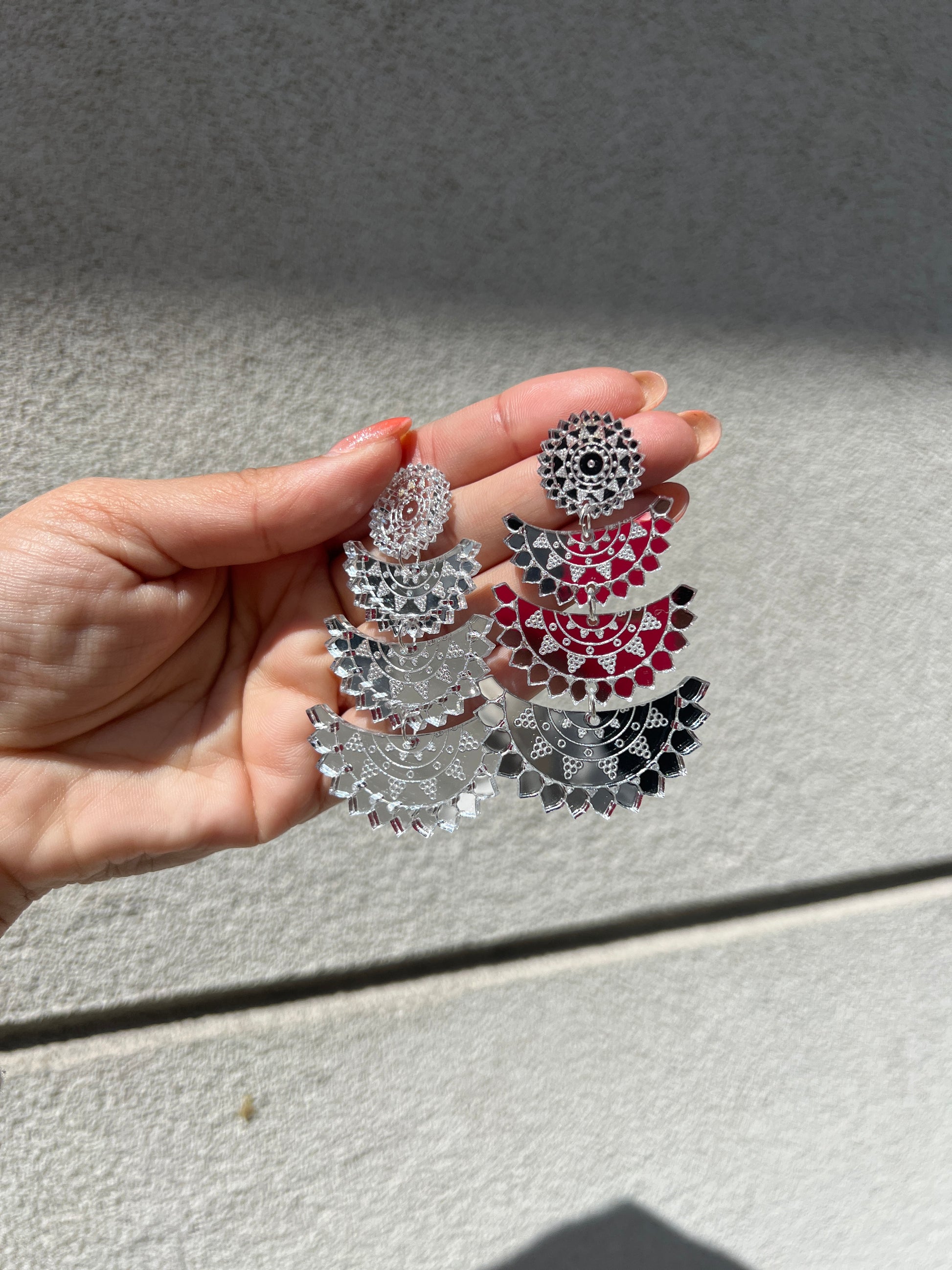 These beautiful, lightweight earrings remind me of the sun and moon, thus the name Chandni!