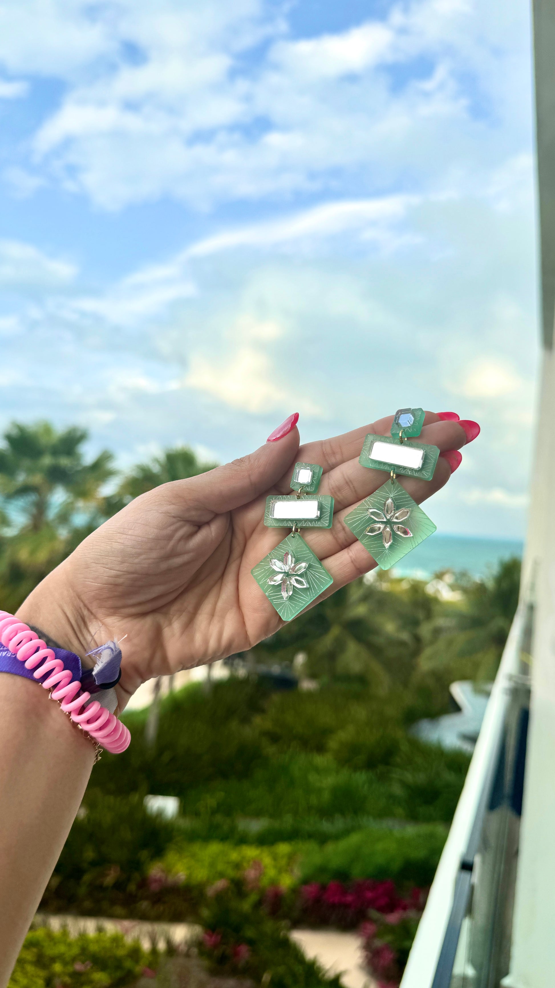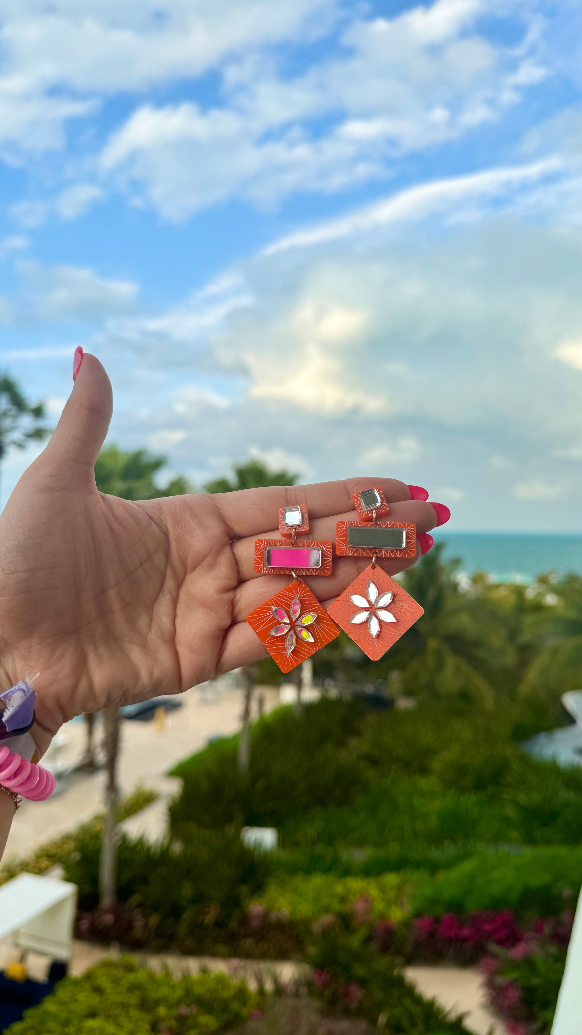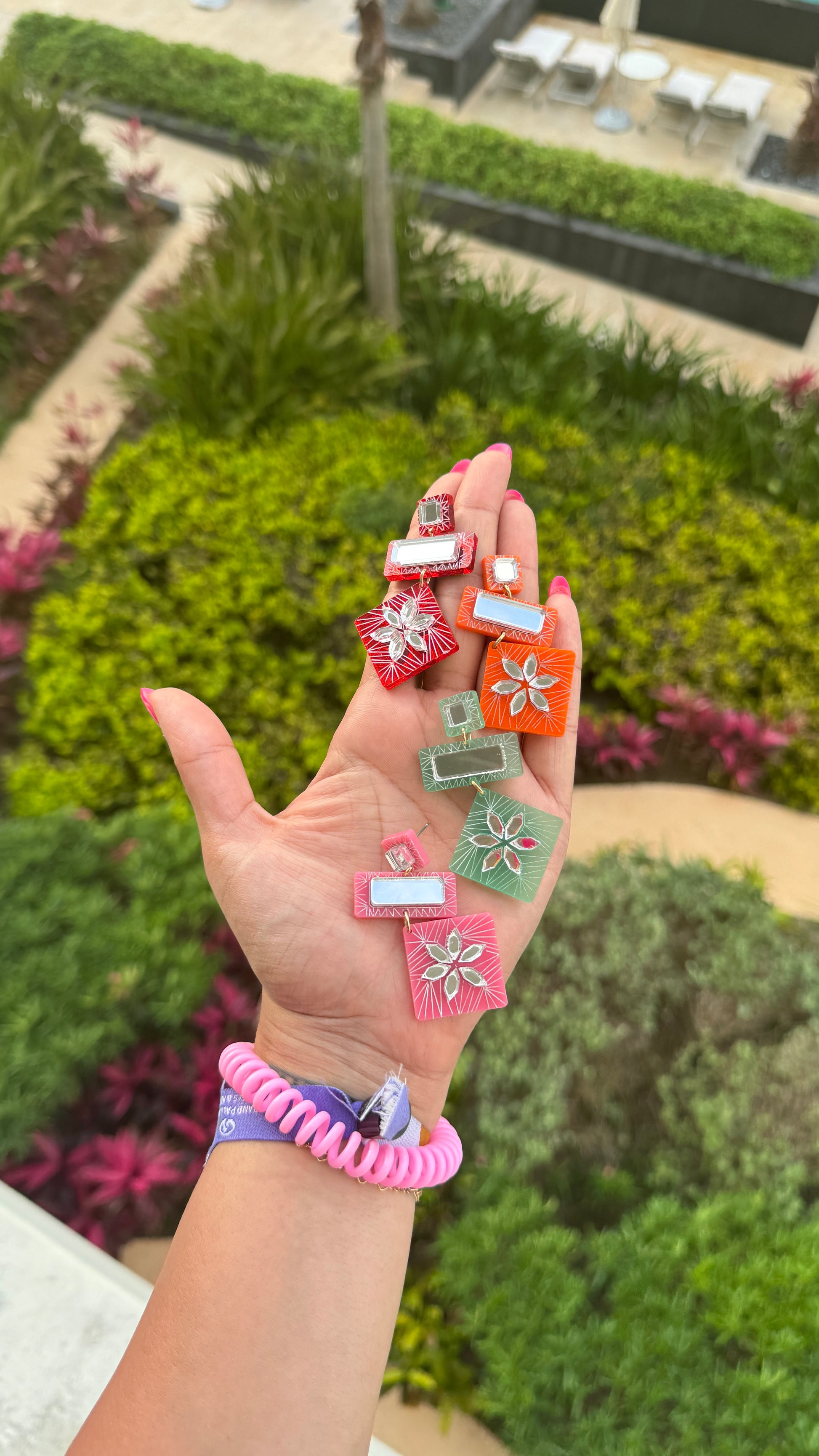 These beautiful earrings were inspired by the traditional earrings wrapped with fabric using pieces of mirror and string.