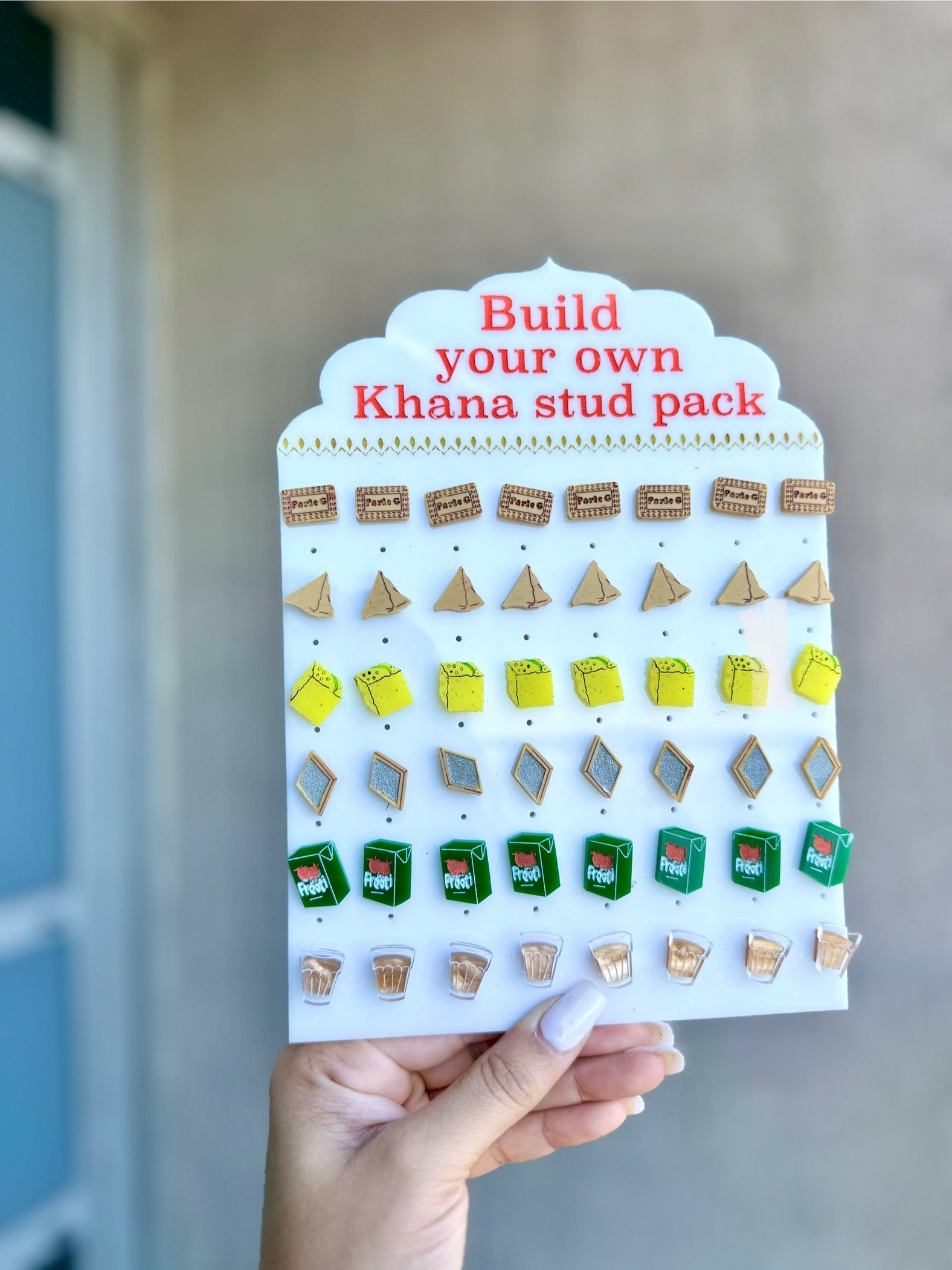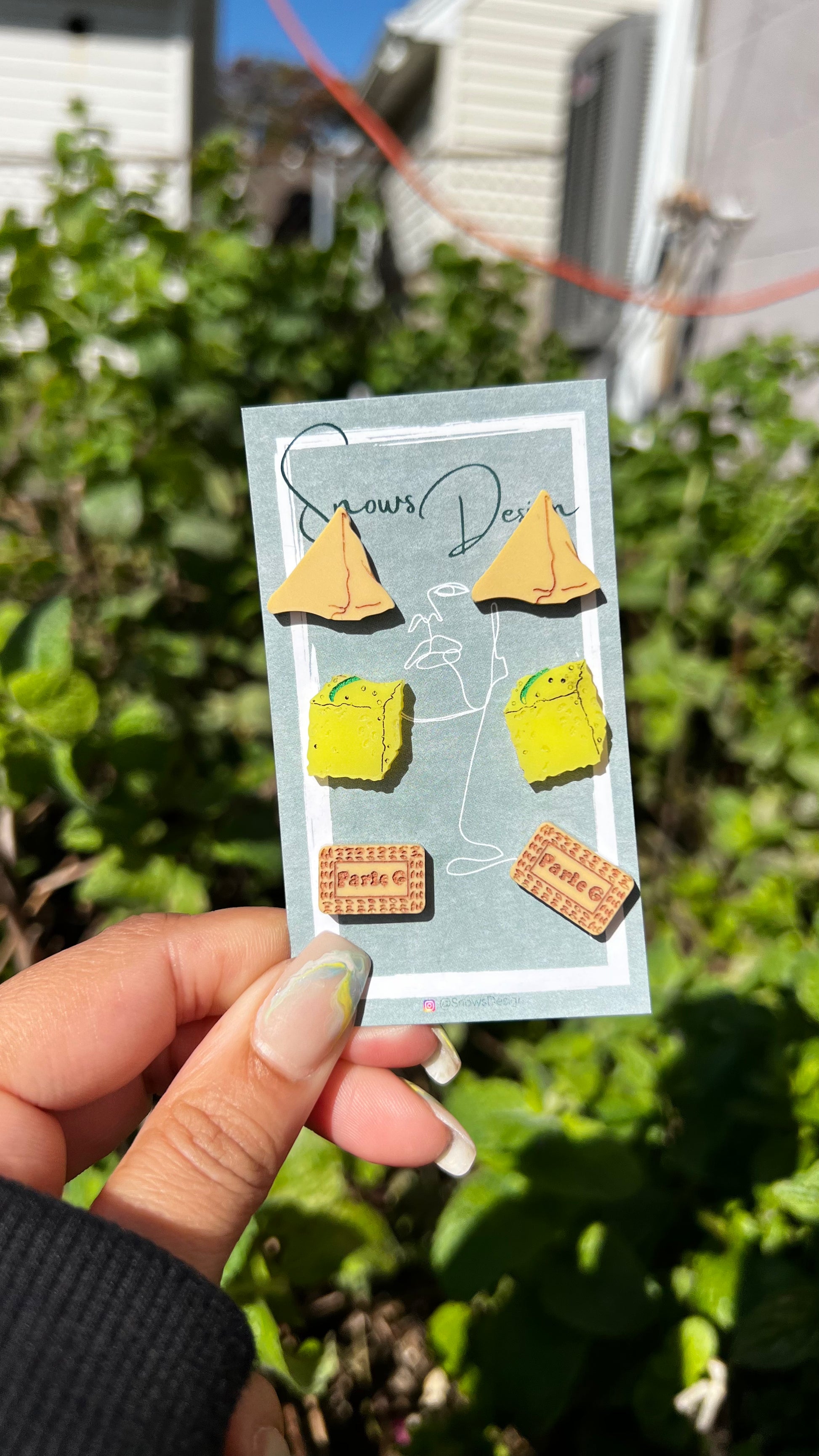 Indulge your nostalgia with iconic South Asian snacks turned into a fun earring stud pack! Each tiny, handcrafted stud is a wearable tribute to the flavors and memories that make these treats special. Perfect for adding a fun, quirky pop of color and culture to your daily style.