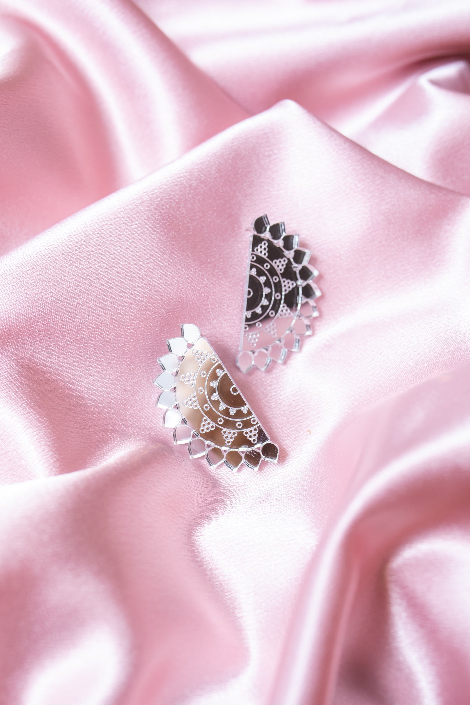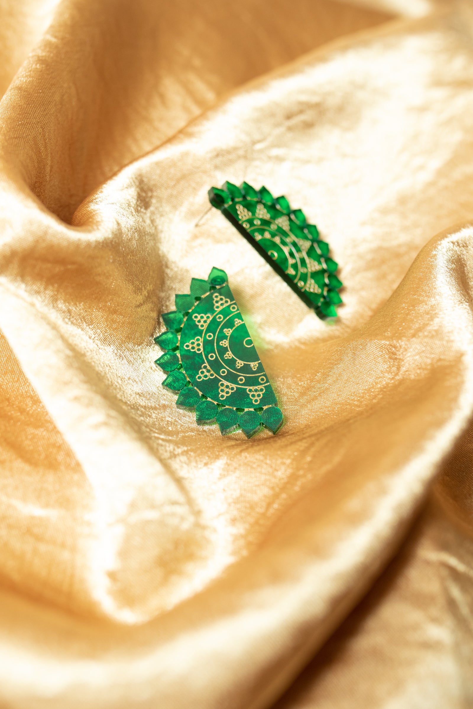 Material: Gold mirror, silver mirror, translucent green or translucent red acrylic, nickel free posts