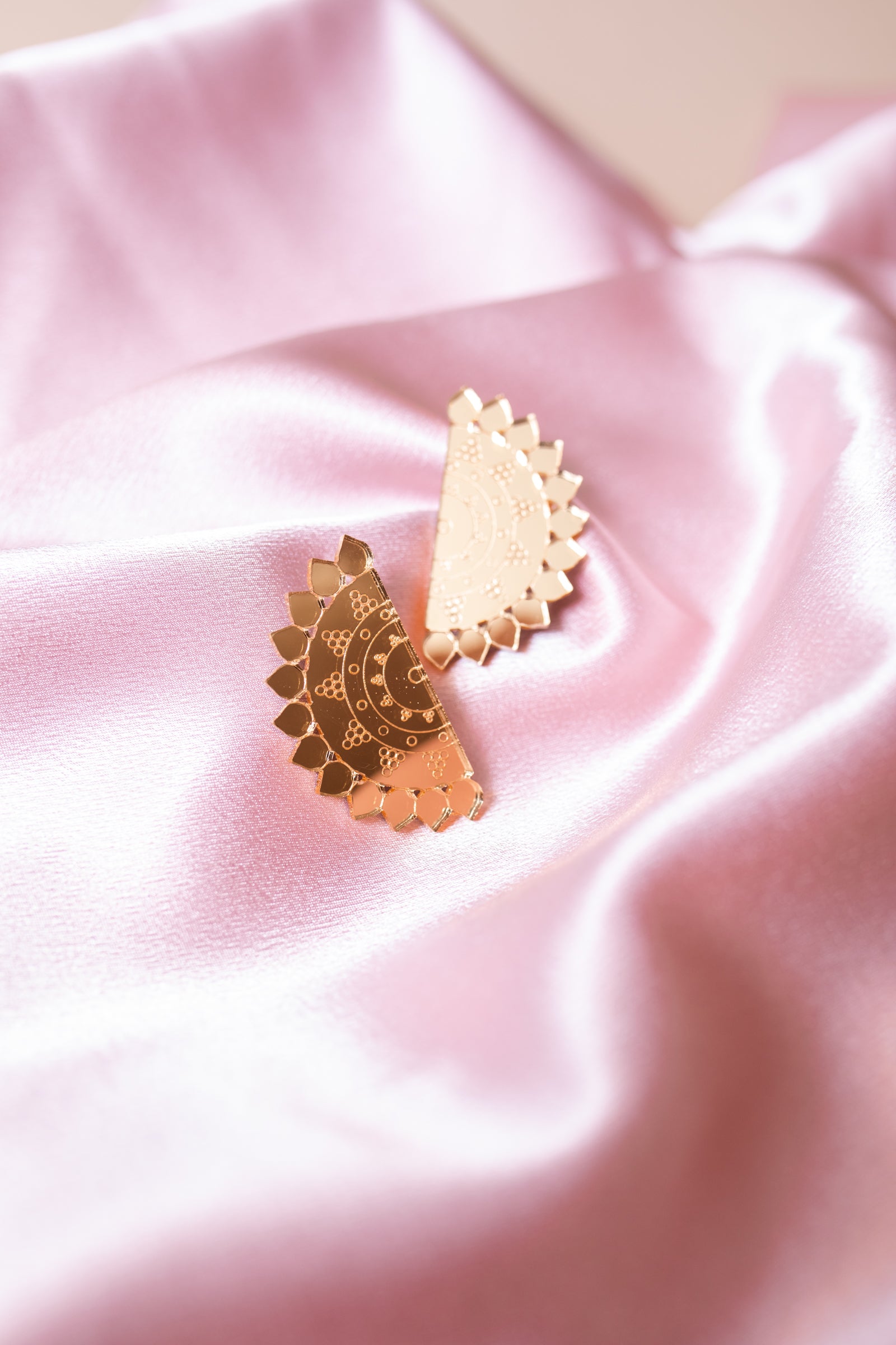 A good friend of mine always asked for studs, but statement studs, so I had to create these absolute gorgeous studs in many different colors. These quarter moon studs are perfectly hand drawn inspired by South Asian designs. These studs are the perfect size with both traditional or every day wear.