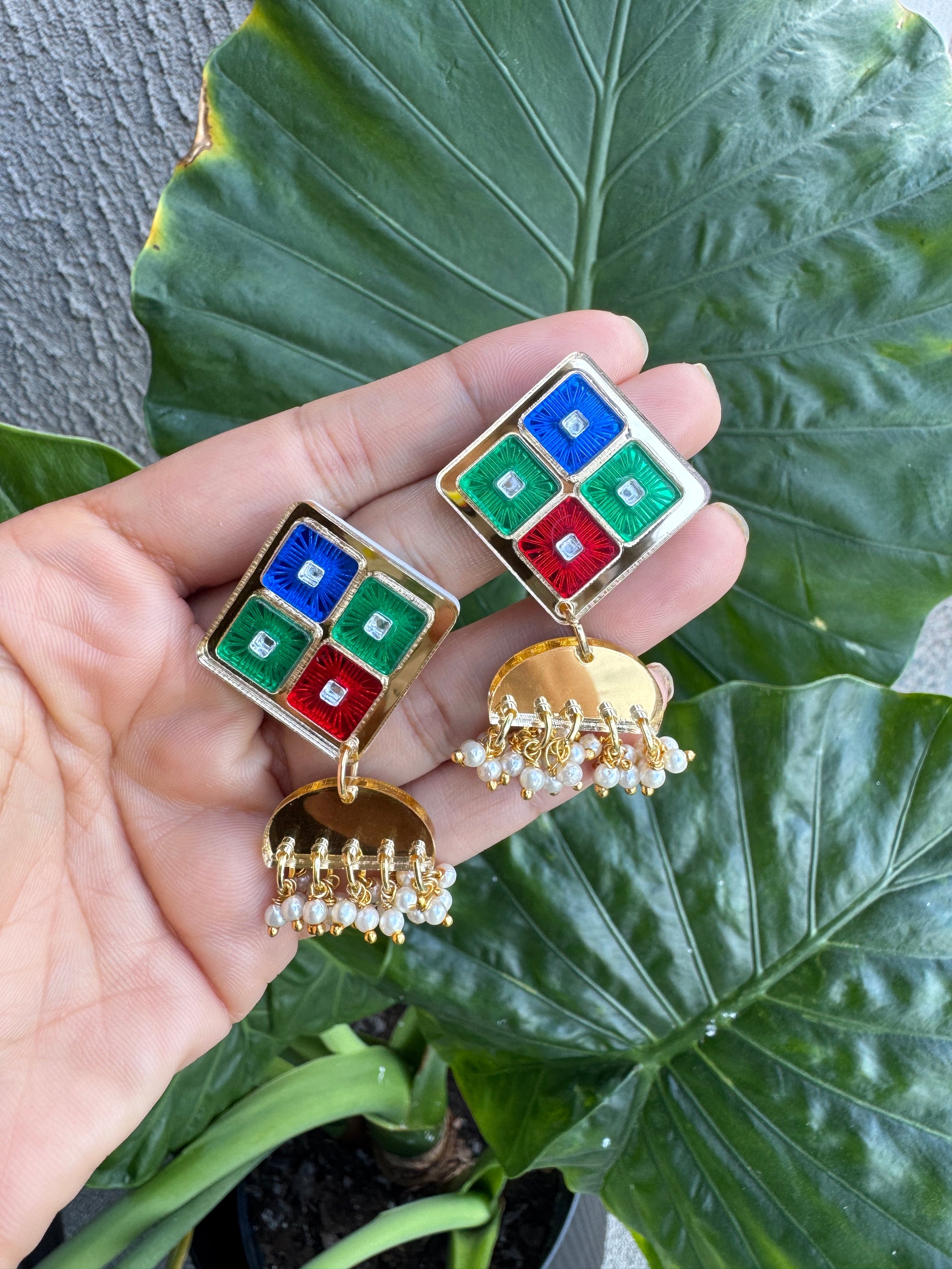 Just like the "flower work" that gives Phulkari its name, our earrings feature intricate patterns and a dazzling array of hues that reflect the joy and spirit of the original textiles. They capture the essence of blooming fields and celebratory designs, bringing that vibrant energy directly to your style. Lightweight and exquisitely detailed, these earrings are more than just an accessory; they're a wearable piece of cultural art, perfect for adding a pop of traditional beauty and modern flair to any outfit. Embrace the bloom and let your style tell a colorful story!