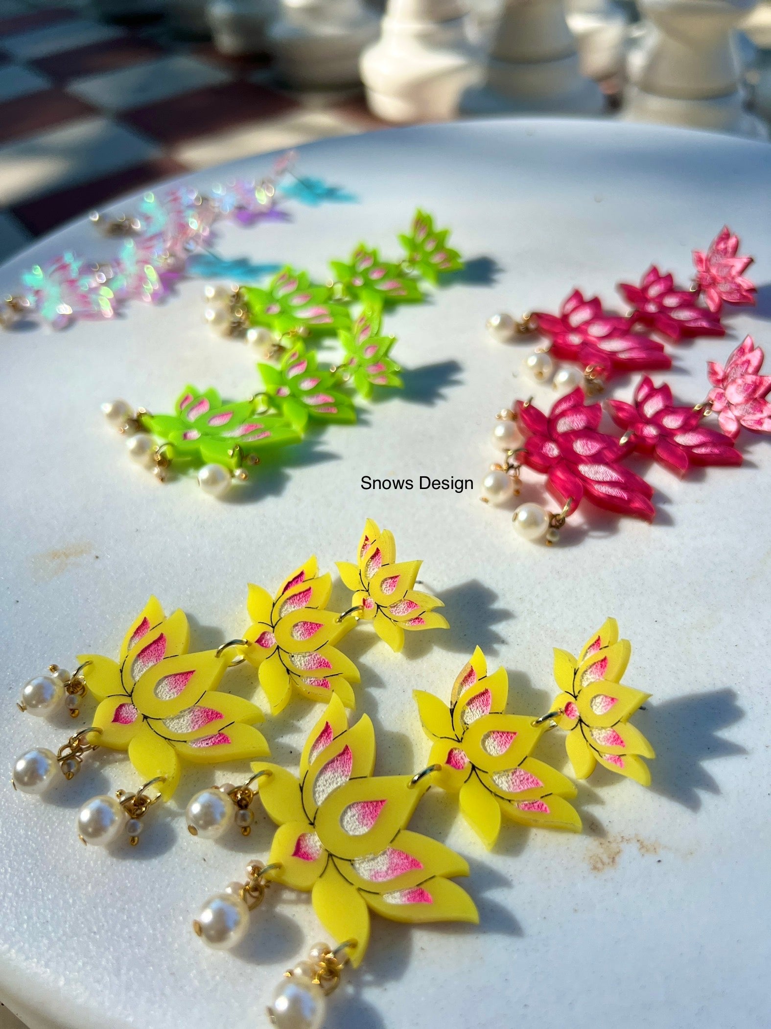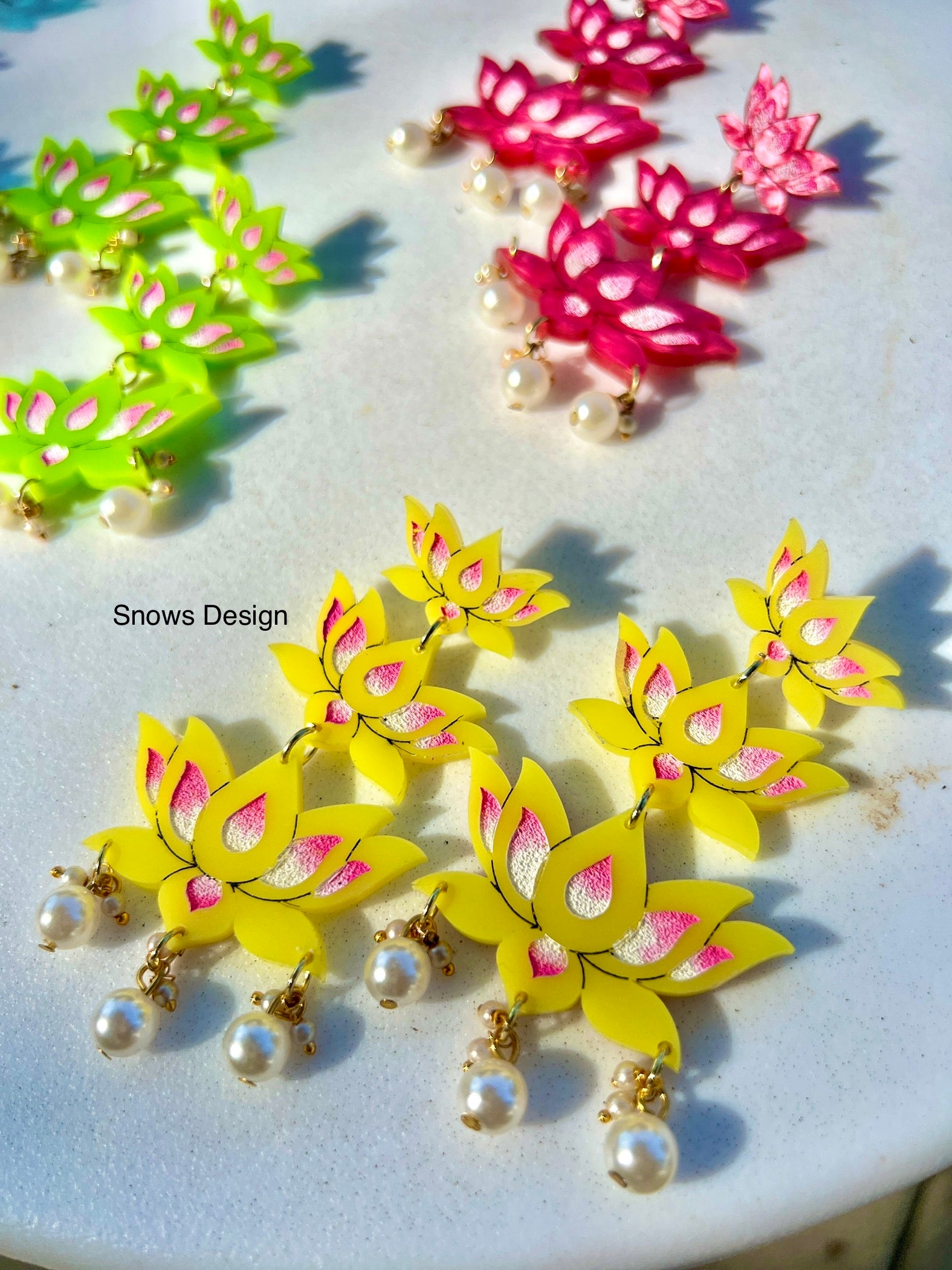 Each pair in this collection is designed to capture the delicate elegance of the lotus in full bloom, featuring graceful lines and intricate details that evoke its natural artistry. These earrings are more than just an accessory; they're a wearable reminder of strength, beauty, and growth. Each lotus is handmade, handpainted and the beads assembled..by hand!